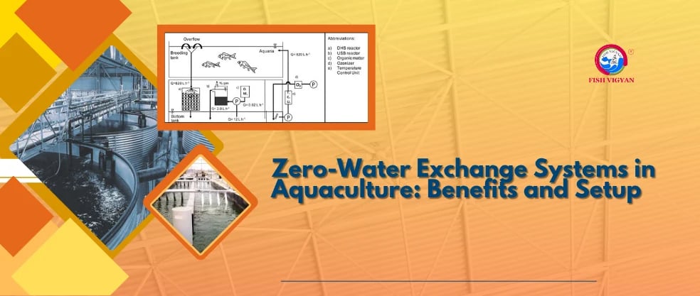 ज़ीरो-वाटर एक्सचेंज सिस्टम (ZWES) एक आधुनिक मछली पालन तकनीक है जिसमें बार-बार पानी बदलने की ज़रूरत नहीं होती। इसके बजाय, पानी को एक बंद सिस्टम के अंदर लगातार फ़िल्टर करके और फिर से इस्तेमाल किया जाता है। पारंपरिक तरीकों जैसे फ्लो-थ्रू या सेमी-रीसायक्लिंग सिस्टम में बहुत सारा गंदा पानी बाहर फेंका जाता है, लेकिन ZWES में पानी को साफ़ करके उसी सिस्टम में वापस भेजा जाता है।इसमें बायोफ़िल्टर, मैकेनिकल फ़िल्टर, हवा देने की व्यवस्था (एरेशन), और पानी को घुमाने की प्रक्रिया मिलाकर पानी को साफ़ और ताज़ा रखा जाता है, ताकि मछली या झींगा अच्छी तरह से बढ़ सके।
